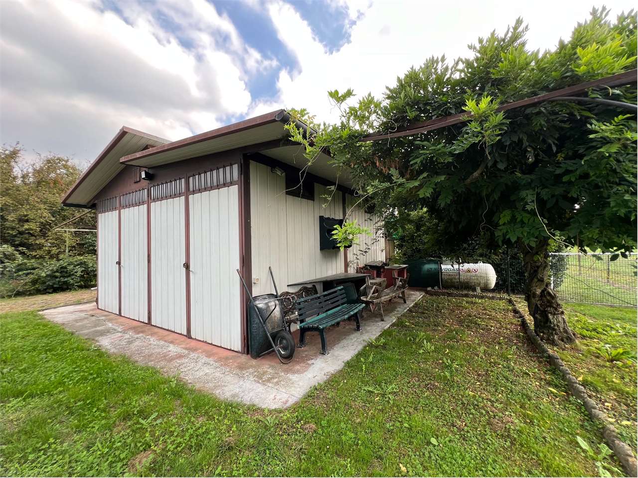 All'interno della proprietà è presente un basso fabbricato con possibilità di parcheggiare due auto e una tettoia.