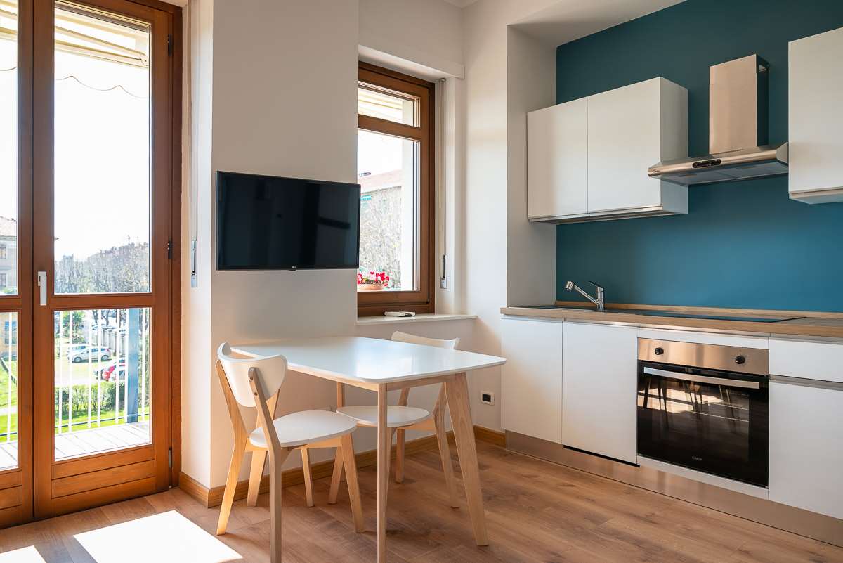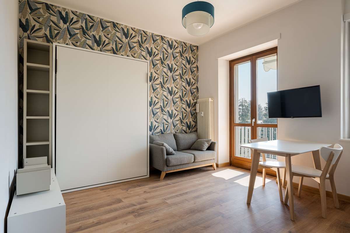 L’appartamento, particolarmente luminoso grazie alla favorevole esposizione, è composto da un unico ambiente ben organizzato che integra zona giorno e zona notte, angolo cottura attrezzato, ampio ripostiglio funzionale e armadiatura a muro su misura, oltre a bagno.